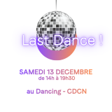 - 14h–17h → Last Dance : Le Marathon chorégraphique Parcours indisciplinaire naviguant entre la cuisine, la salle de danse, les loges, la salle polyvalente et les bureaux (chorale, loto, pratiques de danses diverses, préparation de pâtisseries, surprises…)